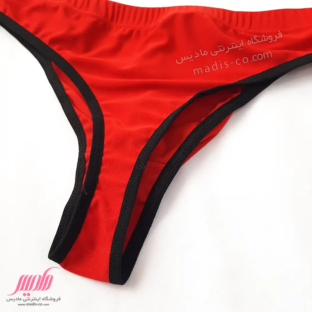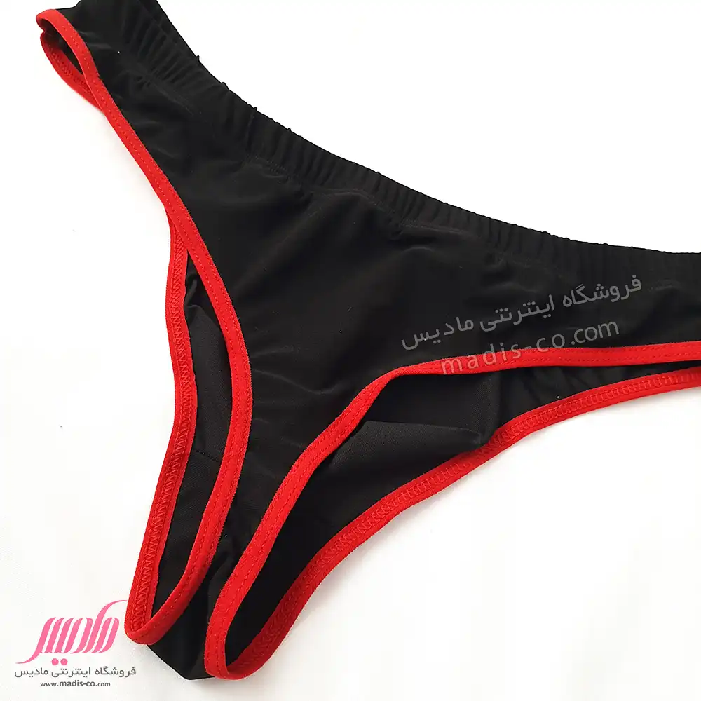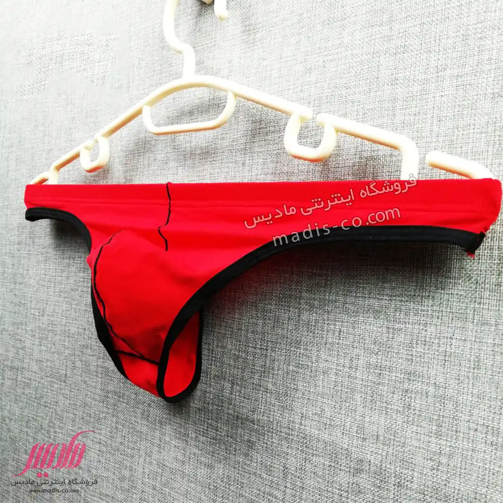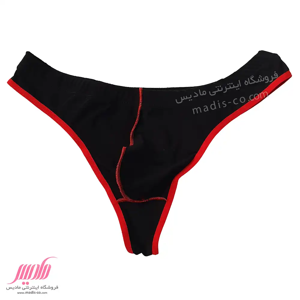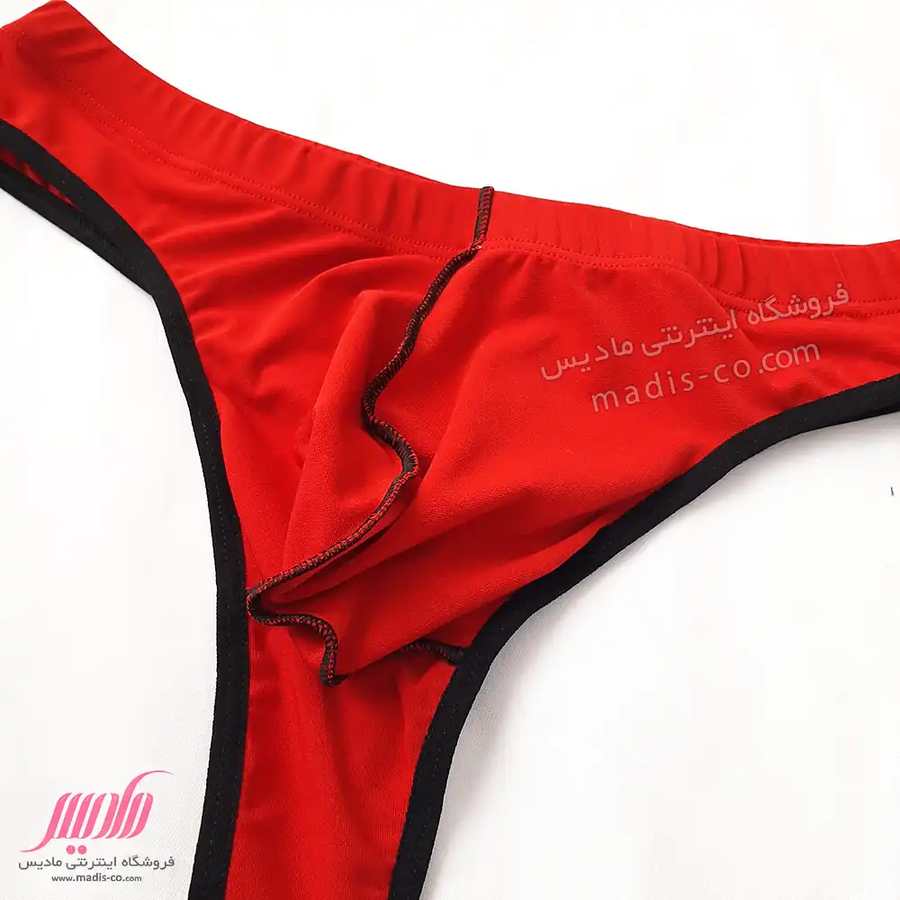 * این شورت فانتزی مردانه از نوع استرینگ می باشد. یعنی قسمت پشت شورت باریک بوده و سطح باسن را پوشش نمی دهد.