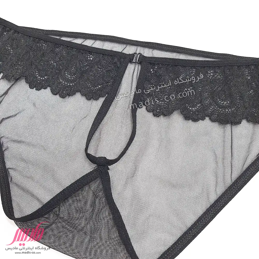 * جنس پارچه شورت ترکیبی از تور و دانتل است. پشت شورت تور ریز بافت کار شده است و جلوی آن پارچه دانتل طرحدار کار شده است.