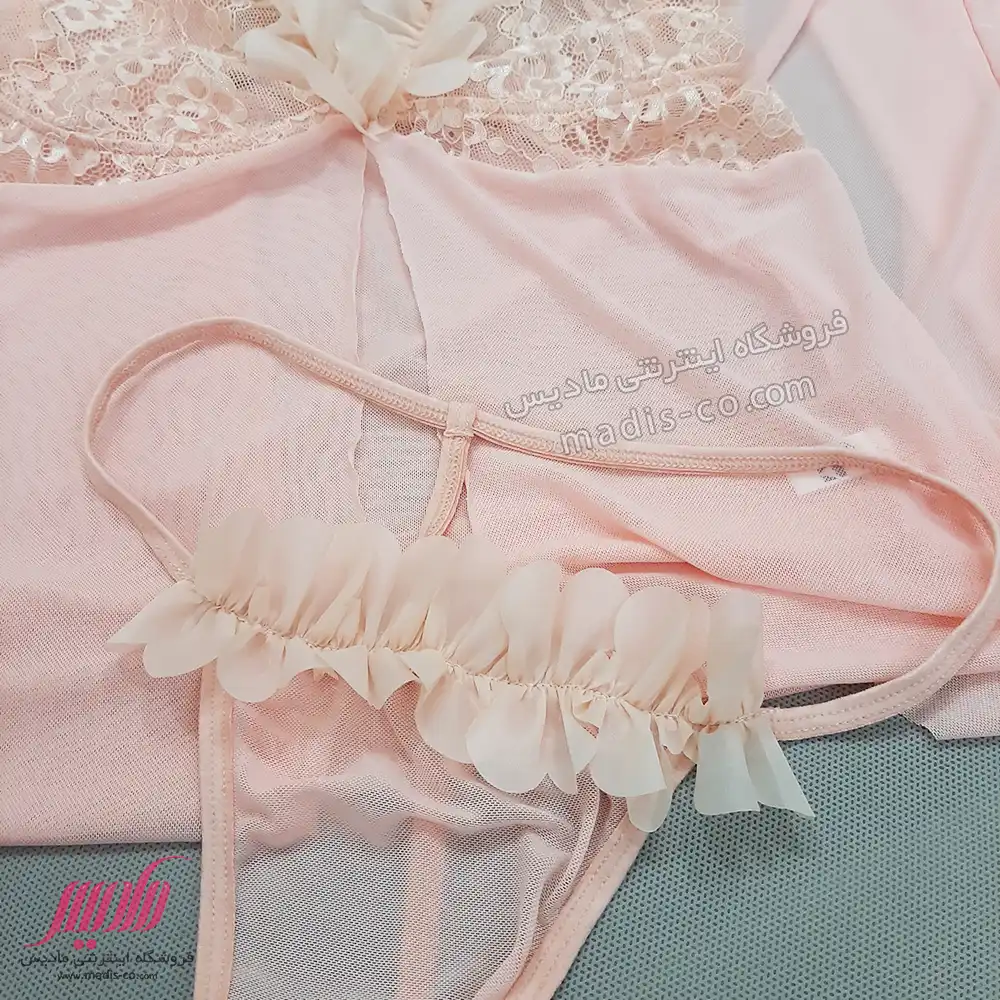* جنس پارچه به کار رفته در این لباس خواب، حریر بوده و بسیار لطیف می باشد.